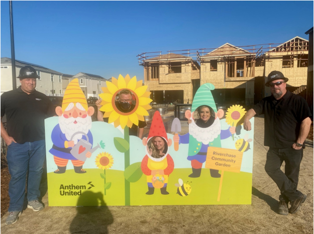 We’re excited to hand over a new amenity to our Riverchase homeowners. Starting late February, residents were able to enjoy growing their own vegetables, fruits and herbs in this community garden while safely getting to know their neighbors. The community garden is set up to operate under the control of a Community Garden Charter Club. To use the community garden, you must be a Riverchase resident and member of the charter club. We have been fortunate to have Meredith Frazer offer her time to oversee this club as Chair of the Committee. As part of the grand opening of the garden, we also had a custom designed garden gnome standup cutout placed for the first couple of weeks in March. Many residents took advantage of this cute photo opportunity.